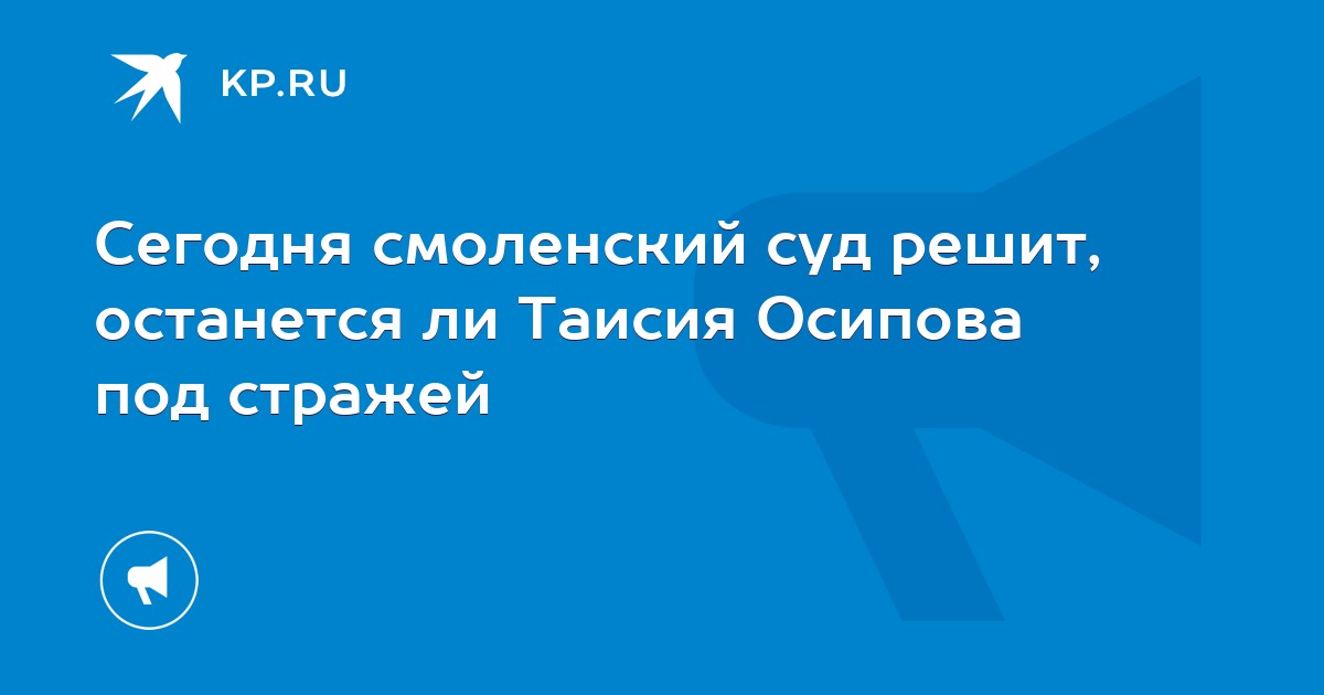 Сегодня в Смоленской областном суде состоится рассмотрение жалобы адвокатов Таисии Осиповой, которые добиваются отмены решения о ее аресте.