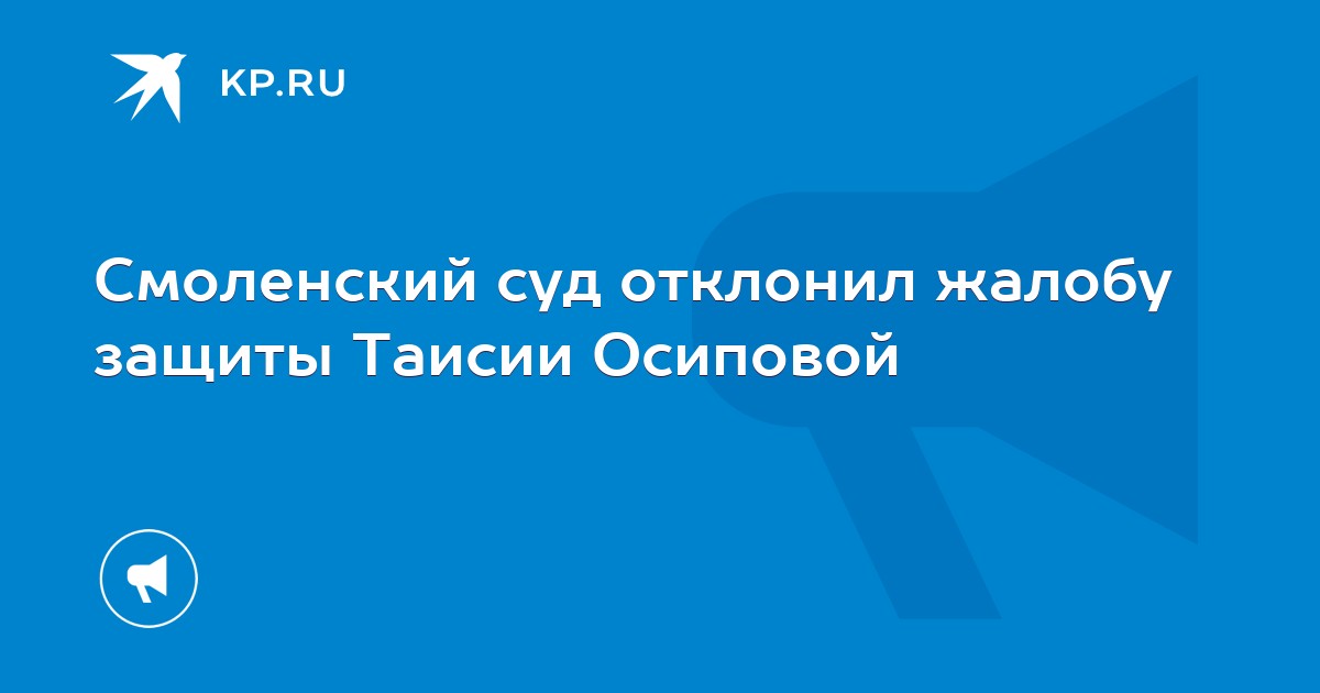 Сегодня в Смоленском областном суде прошло рассмотрение жалобы защиты Таисии Осиповой на продление срока ее содержания под стражей до 15 июня.